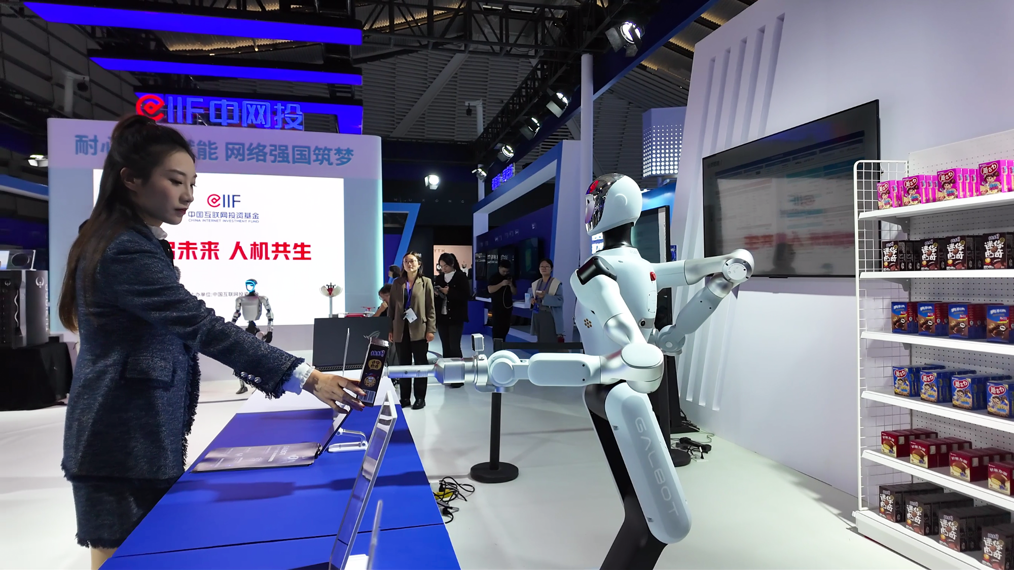博览会现场,自动取货机器人正在为观众拿取商品(央广网记者 尚天宇 摄)