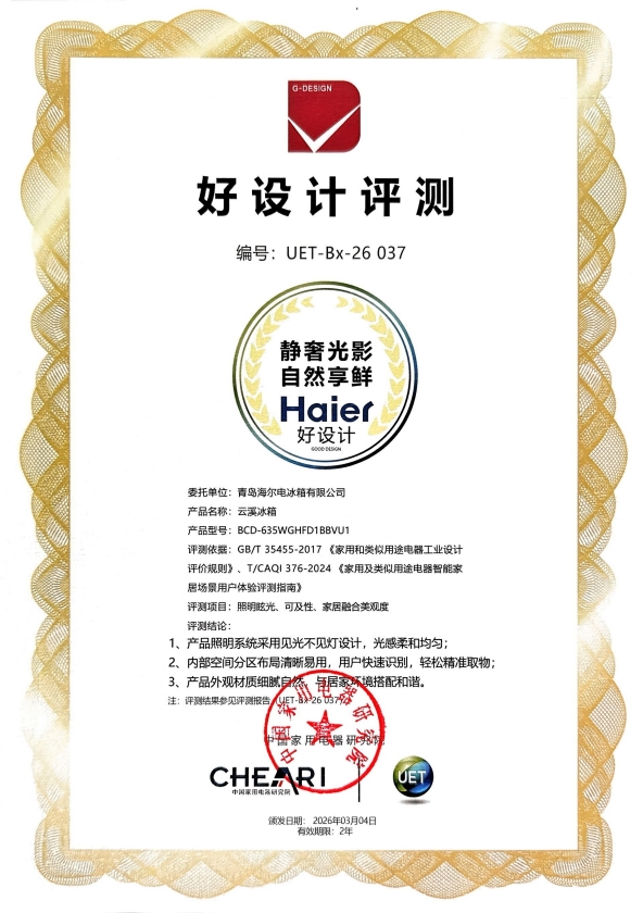 为此,海尔再次听劝,推出深色系的海尔云溪冰箱新品。不仅将“中国最美溪流”武夷山九曲溪的风光搬到了冰箱设计上,更是通过精细分区设计,将用户从繁琐的冰箱收纳家务中解放出来。近日,这款新品也获得了中国家电院颁发的“好设计奖”,并将在2026AWE现场与大家见面。