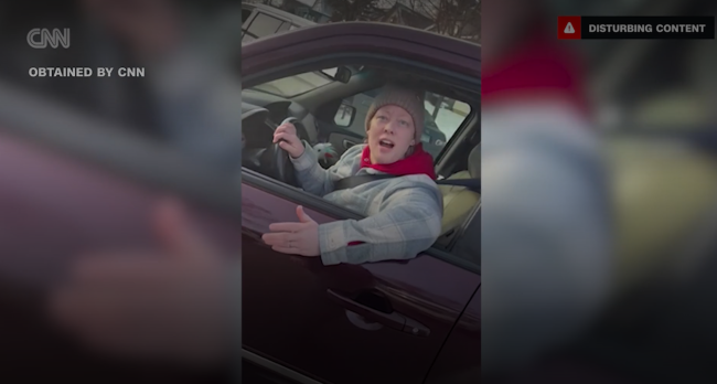视频中,古德与罗斯交谈。“没事儿,兄弟。我没生你的气。”古德说。罗斯没有回应。CNN说,车上乘客、遇害女子的同行人贝卡·古德在冲突发生前已经下车。当罗斯绕到车后时,举着手机拍摄的贝卡对罗斯说,“我们可不是每天早上都换车牌,先跟你说清楚。等你之后来找我们时,车牌还会是同一个。”