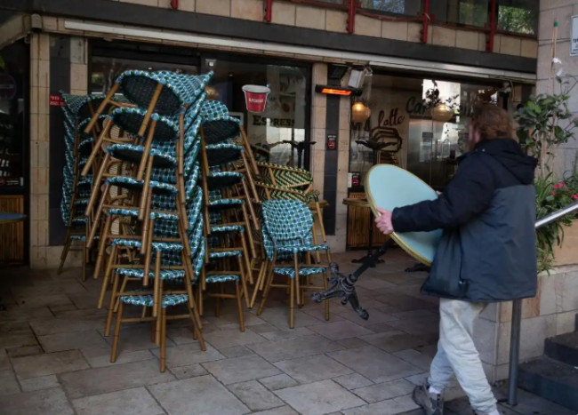 2月28日,在耶路撒冷,一处咖啡馆在防空预警响起后关闭。新华社记者陈君清摄