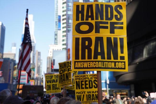 2月28日,民众在美国纽约举行集会游行,抗议美国和以色列军事打击伊朗。新华社记者张凤国摄