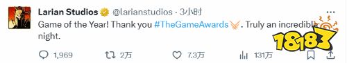 而拉瑞安工作室也在社交媒体上不停发文庆祝获奖,并感谢玩家们的支持。