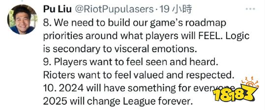 拳头游戏总监Pu liu曾在推特上享了有关过去一年的感想和未来规划,其中就谈到了“2024年我们会为每个玩家带来一些东西,2025年将会永久改变英雄联盟”,这其中所提到的“改变”,其实已经悄然开始,新赛季、新地图、新装备,让整个峡谷焕然一新,游戏重新焕发了生命力。玩家的游戏体验上也有了明显的改善,大区合并让开黑更容易,新春活动福利与诚意已经拉满了,还有后续的三合一未拥有、峡谷之巅环境整治,都已经在计划当中,这些内容都将潜移默化的,让玩家的游戏体验变得更好!