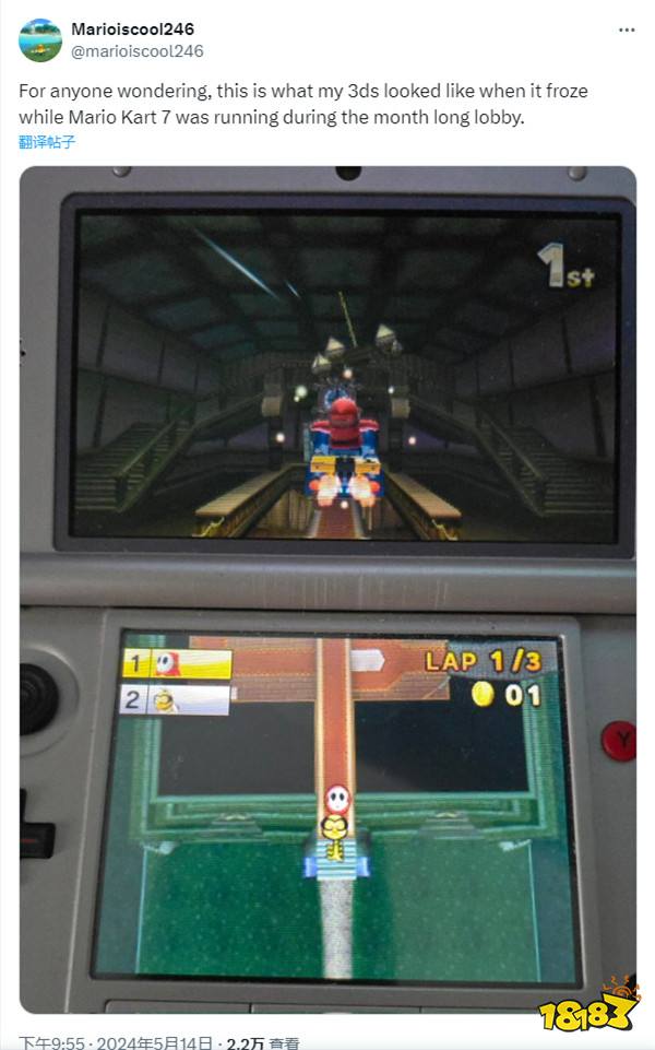 据了解这两位玩家一直在同一个对局中游戏,他们设置了电脑玩家一直在进行游戏,直到Marioiscool246的3DS在近日突然死机,两人的对局才被迫中止。