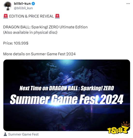 靠谱舅舅党billbil-kun爆料了《龙珠:电光火石ZERO》终极版(有实体盘)的价格,为109.99美元(约796元)。更多细节将于本周的夏日游戏节公布。