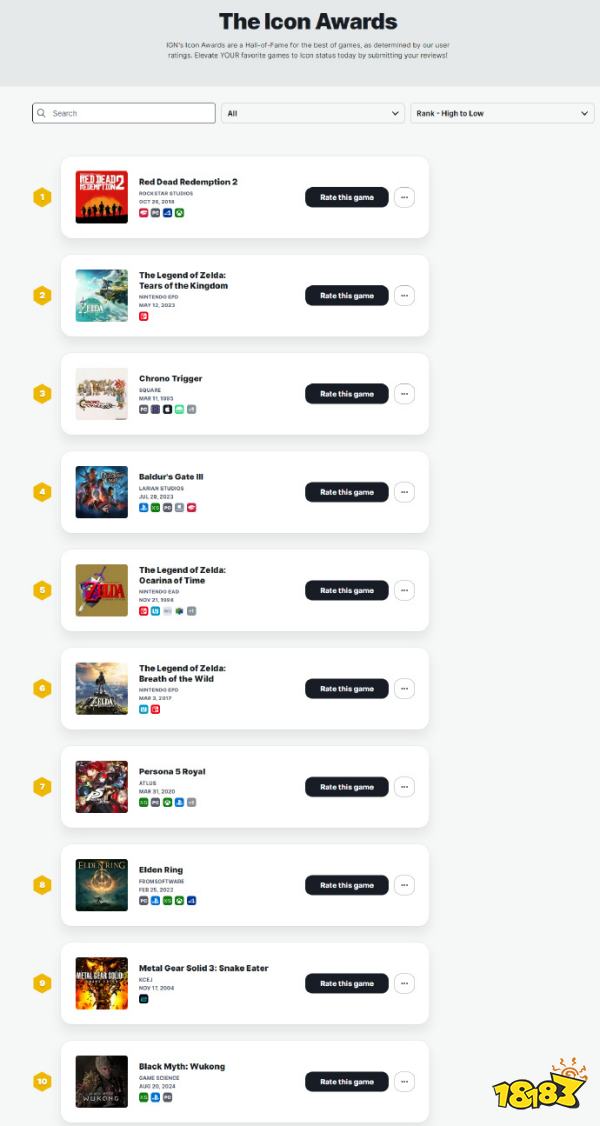 根据IGN官网数据统计,目前《黑神话:悟空》的玩家评分为9.5分,有超过1300条玩家评论,位列IGN所有游戏的玩家好评排行榜第十名。