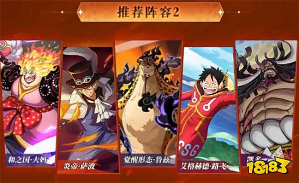 阵容二:和之国·大妈 炎帝·萨波 觉醒形态·鲁兹 艾格赫徳·路飞 凯多