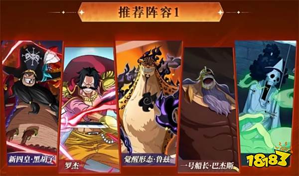 阵容一:新四皇·黑胡子 罗杰 觉醒形态·鲁兹 一号船长·巴杰斯 骨头吉
