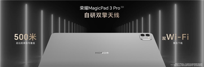 荣耀MagicPad3 Pro采用8扬声器设计,升级第三代空间音频技术,让声场更加宽广立体;业界最大12450mAh青海湖电池,最高支持80W有线超级快充,告别电量焦虑;采用自研双擎天线,可实现500米WiFi超远距离覆盖。