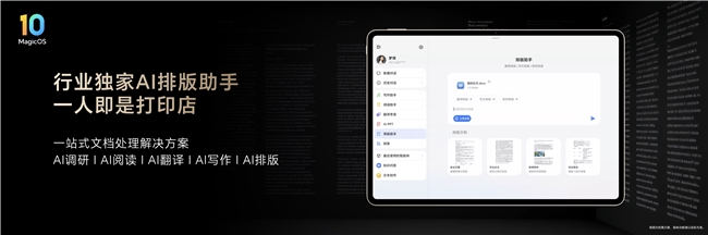 在MagicOS 10加持下,荣耀MagicPad3 Pro带来全新PC级办公体验,从PC级桌面、PC级WPS Office到PC级文件管理,效率全面跃升。荣耀MagicPad3 Pro内置AI文档智能体和AI会议智能体,不仅带来行业独家的一键排版功能,还能实时生成会议纪要与待办事项清单,真正实现会议无忧;而智能识屏功能可即时响应查询,让AI体验全面提升。