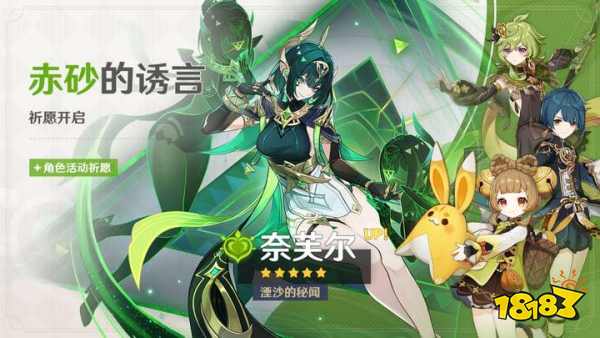 「月之二」版本更新后至2025年11月11日17:59,角色活动祈愿「赤砂的诱言」与角色活动祈愿-2「众水的颂诗」开启,全新限定五星角色「湮沙的秘闻 · 奈芙尔(草)」与限定五星角色「不休独舞 · 芙宁娜(水)」迎来概率UP。