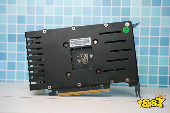艾尔莎RTX5060幻雷者8GD7的背面是全金属背板,上面做了多条镂空槽,机箱和散热器的部分气流可以从这里经过,为PCB辅助散热。