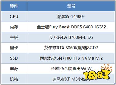 结合《战地6》的性能需求,我们准备了一套能够畅玩该作的游戏配置。从硬件的选择和搭配来看,这套配置使用了酷睿i5-14400F处理器搭配B760主板以及RTX5060显卡,内存和固态方面分别是32GB的DDR5 6400套装以及1TB的PCIe 4.0硬盘,综合性能完全可以满足《战地6》以及其它热门单机和网游的需求。与此同时,这套配置的主板和显卡均来自于老牌厂商艾尔莎,其品质与做工足够扎实,可以提供持久稳定的使用体验。