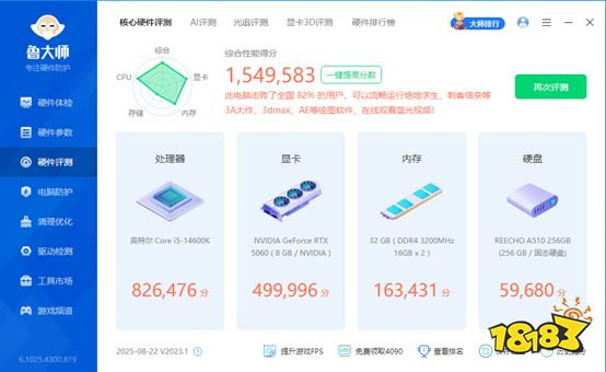 在鲁大师性能测试当中,显卡的得分是499996分。