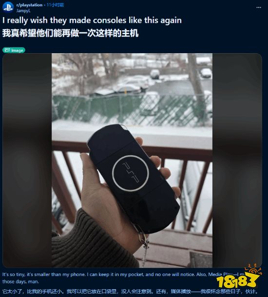 据帖主描述,PSP 的便携属性是最打动他的地方:设备体积小巧,甚至比手机还小,放进口袋也不容易被注意到;同时他也怀念 PSP 的媒体播放功能,以及那段“随身带着一台小机器就能玩游戏、看视频”的日子。在不少玩家看来,这种便携设备带来的自由感与掌控感,是当下许多产品难以完全复刻的体验。