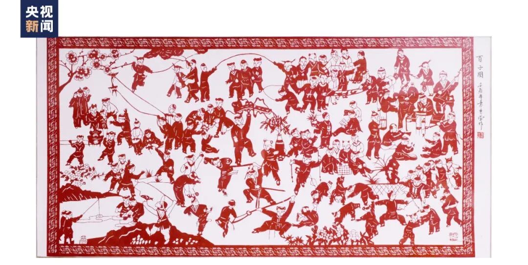 2007年,袁秀莹又凭借作品《百子图》在第三届国际剪纸艺术节获“终身成就奖”。《百子图》是袁奶奶根据自己的童年回忆剪出来的作品,“琴棋书画、捉迷藏、翻跟斗、倒立、武术……这个是我童年玩的东西,我想用剪纸把它记载下来。一个人的动作有很多种,我就根据这个剪出了一百个小孩儿。”