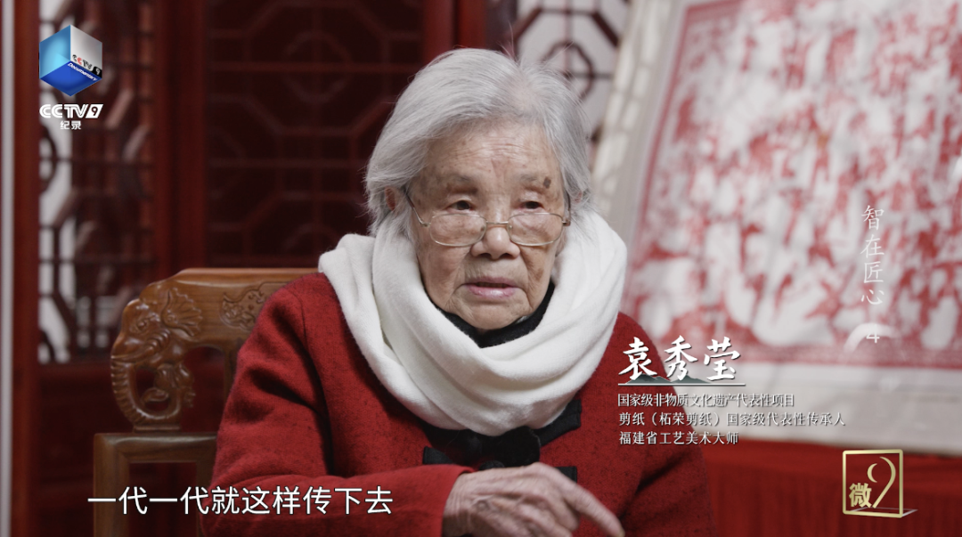 为了让柘荣剪纸更好地传承下去,袁奶奶还编著了《少年趣味剪纸》《袁秀莹剪纸作品集》等,作为青少年的学习资料。她成立了袁秀莹剪纸艺术馆,成为当地剪纸人才的培养基地,陆续培养了很多学生,包括多名非遗代表性传承人。
