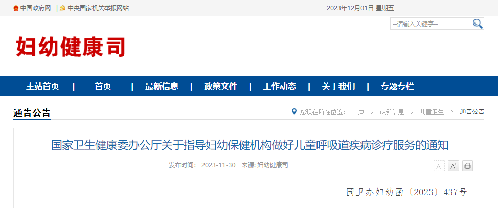 国家卫生健康委办公厅关于指导妇幼保健机构做好儿童呼吸道疾病诊疗服务的通知