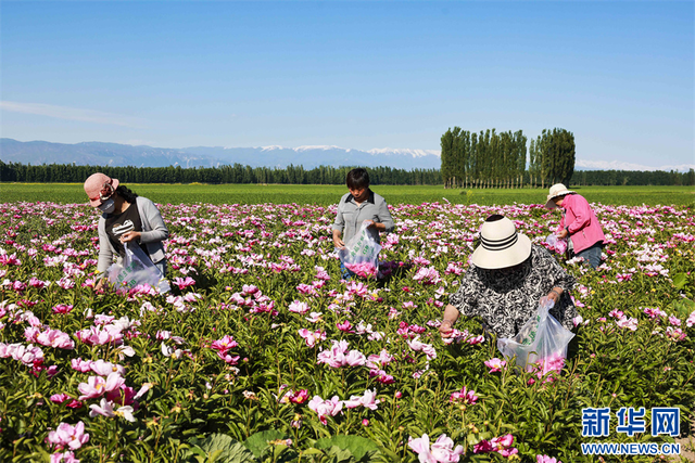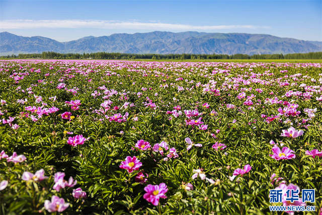 近日,素有“塞外江南”美誉的伊犁河谷深处的新疆新源县木斯村芍药种植基地的芍药花次第开放,连片的田野变成花的海洋,吸引不少游人前来打卡。