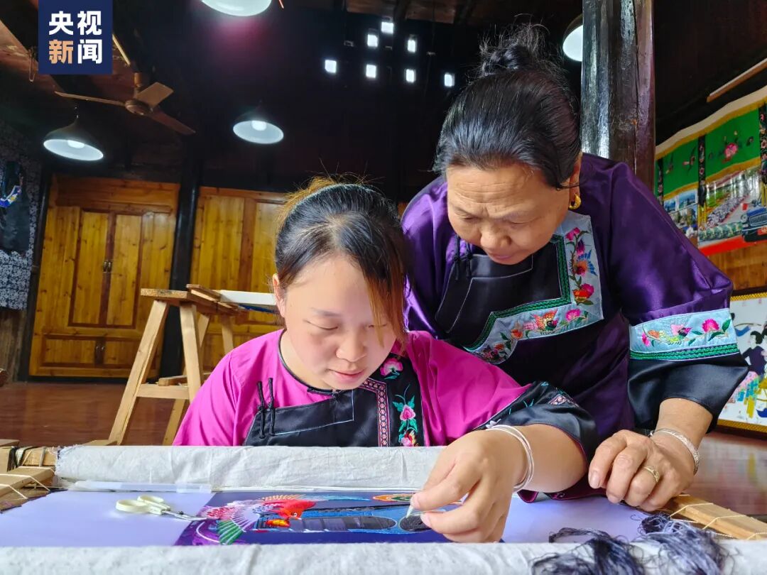 当地建起了苗绣产业基地,并发起“让妈妈回家”志愿服务项目,吸引外地务工人员返乡加入苗绣创业培训。目前,村里已有50多位绣娘实现“在家门口就业”,在陪伴孩子的同时,每月还能增收数千元。