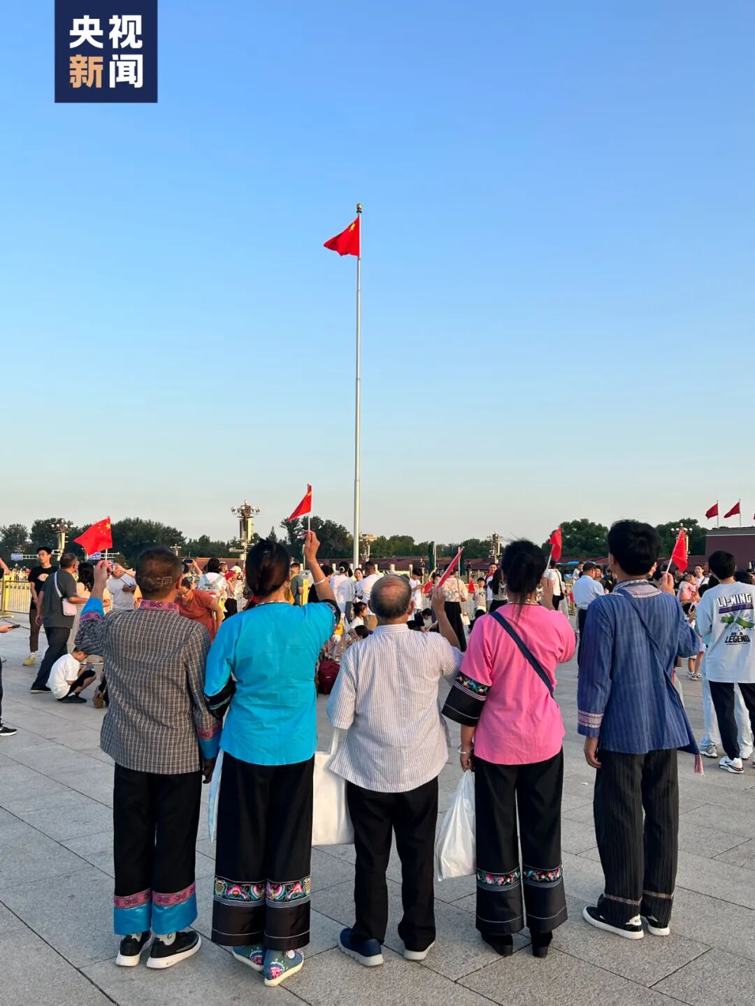 今天凌晨,村民们前往天安门广场,伴着晨光一起观看升国旗。老人难掩激动:“从家门口坐飞机来看升旗,意义很特殊。”小朋友将升旗全程拍摄了下来:“想回村后跟大家分享。”大叔唱完国歌后忍不住欢呼:“一看到红旗飘飘,心里就热乎乎的。”