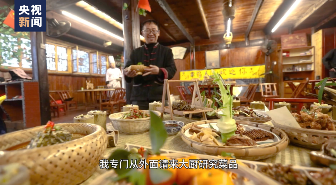 在他的努力下,农家乐生意越来越好,曾被评为“湘西州十佳农家乐”。但杨超文并不满足于此,为了让农家乐更有“苗族的样子”,他又开始了折腾——瞄准湘西苗族的竹文化,从室内设计到锅碗瓢盆,他打造出了全竹农家乐。