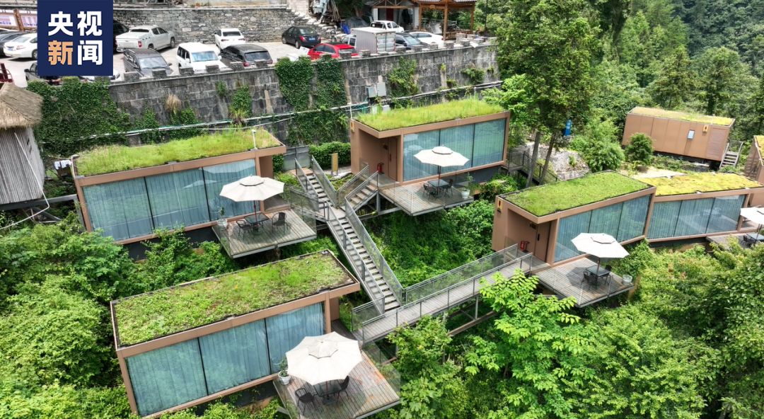 除了农家乐,十八洞村的悬崖酒店也别具特色。它在不破坏山林原生态地貌的前提下,将酒店搬至悬崖峭壁之上,18栋客房户户朝景,全景玻璃窗将整个村落收进眼底:低头是山间溪水潺潺,远望是村落炊烟袅袅,抬头是星河散落满天……