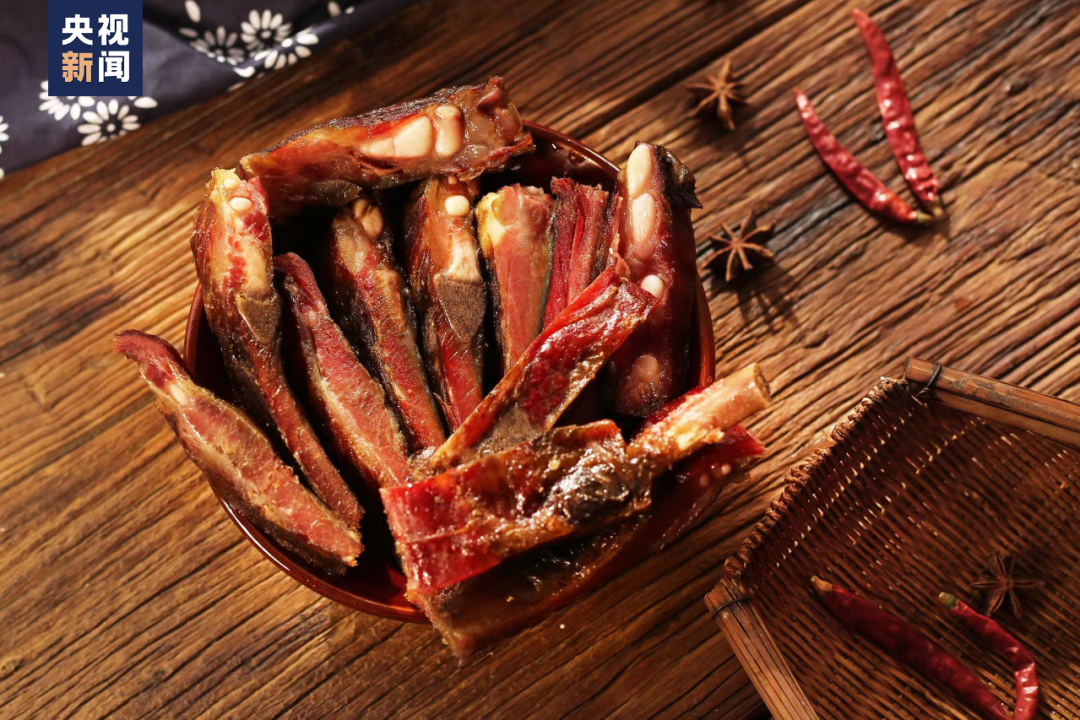 去十八洞村,一定要尝尝腊肉。每逢冬天,村民们把肉一条条切好,粗盐腌渍后,挂在火塘上方。松柏等木质燃烧特有的烟火香气袅袅上升,熏得肉滋滋冒出小油珠,一点点变得紧实。